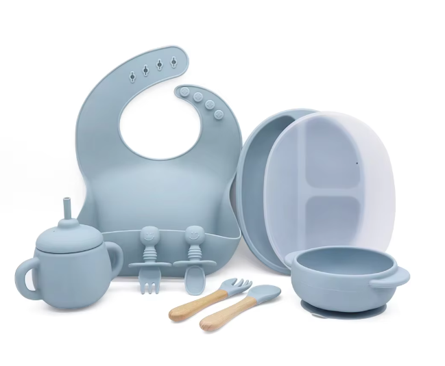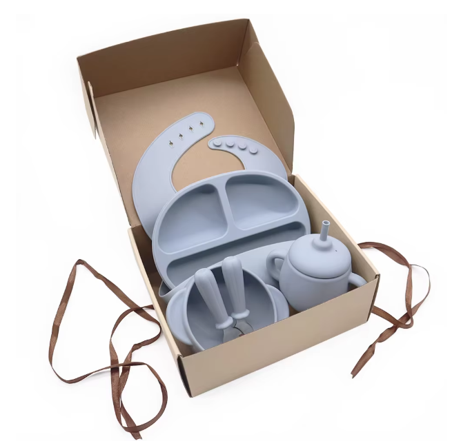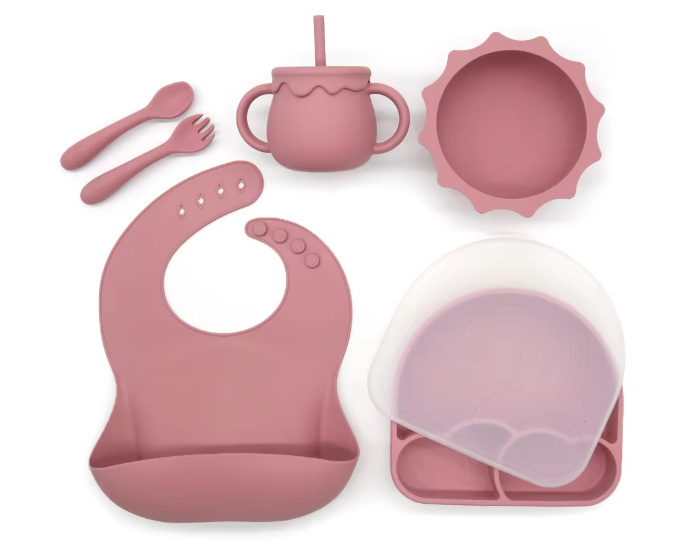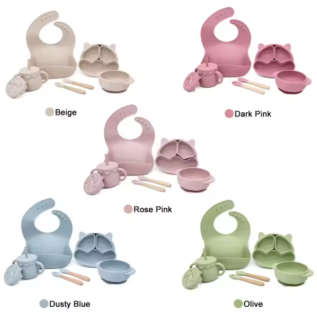Children Tableware Custom Silicone Bowl Weaning Suction Plate Baby and Toddler 6 Piece Feeding Set