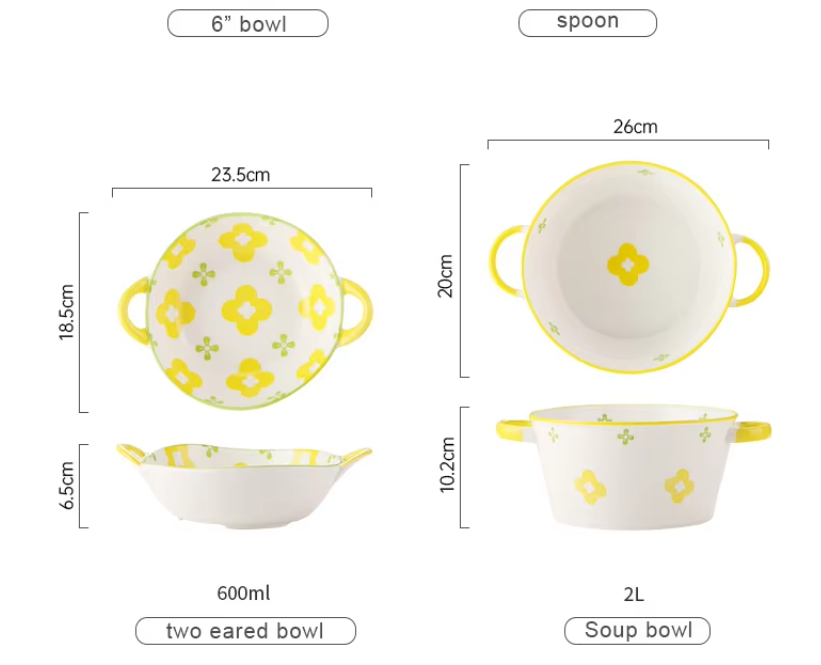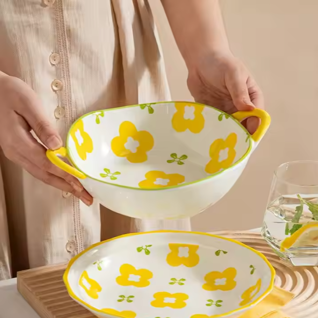 Modern Yellow And White Flower Pattern Dinnerware Set 10Pcs Ceramic Dishes & Plates For Breakfast Dinner