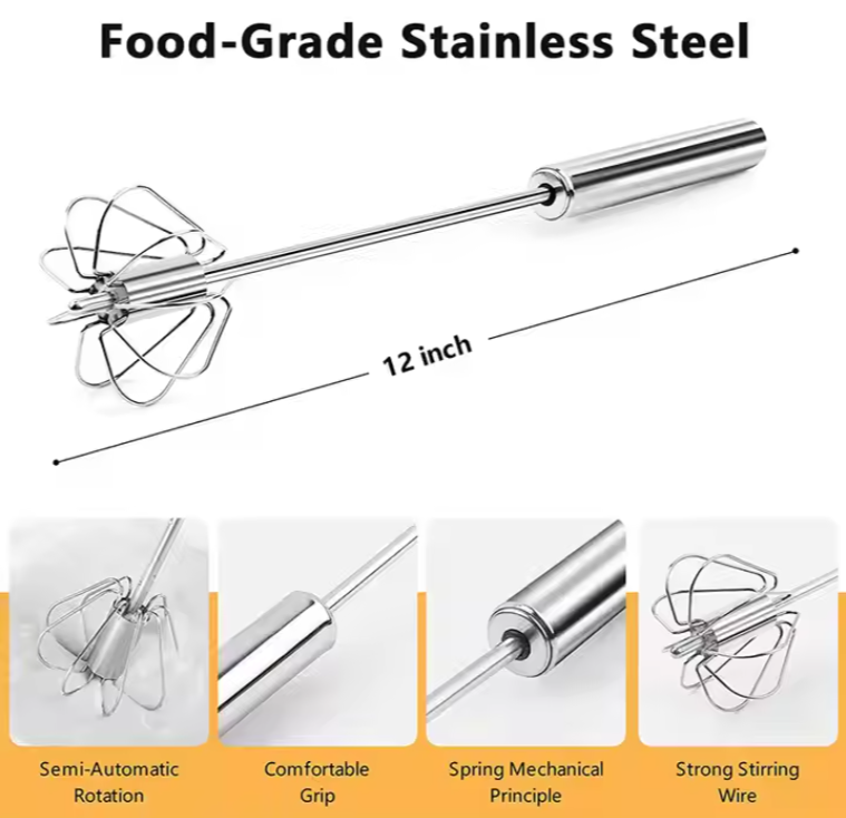 Stainless Steel Manual Hand Mixer Semi-Automatic Spinning Egg Push Whisk Egg Beater